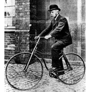 J.K. Starley op een model uit 1886